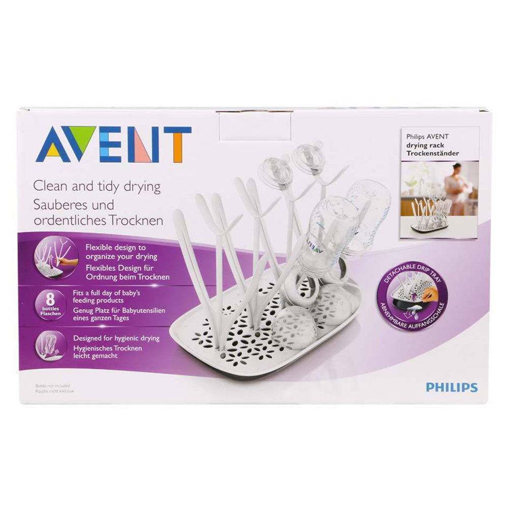 The Philips AVENT drying rack is designed to dry your baby’s bottles and accessories in the most clean and tidy way. With a flexible design, a detachable drip tray and room to hold any bottle size, it is answering your daily drying needs.
